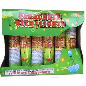 Colored Parachute shoots skyward then floats down with 7 brilliantly colored flares