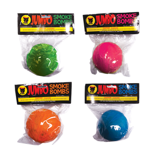 Smoke out the neighborhood with these Jumbo Smoke Bombs. Size: 3-3/4″ Ø Each pack has a different color: 1. Blue 2. Green 3. Yellow 4. Orange A...