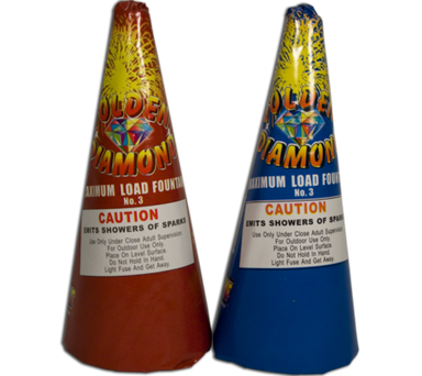 A loud, crackling fountain with radioactive colors and pine sparks. Size: 7-4/5″ H x 3″ Ø Avg. Duration: 24 sec. Effects:1. Gold pine and orange ...